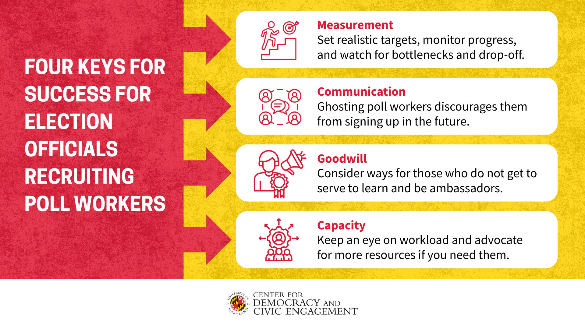 Election offices, too, can often improve their poll worker recruitment. We recommend the following: